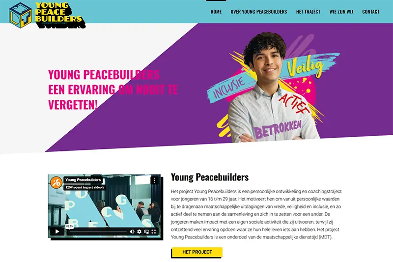 Het project Young Peacebuilders is een coaching- en ontwikkelingstraject voor jongeren van 16 t/m 29 jaar. Het helpt hen om vanuit hun eigen waarden bij te dragen aan thema’s zoals vrede, veiligheid en inclusie. Deelnemers zetten zich in voor de samenleving door een eigen sociale activiteit op te zetten en doen daarbij waardevolle ervaring op voor de toekomst. Het project is onderdeel van de maatschappelijke diensttijd (MDT).
